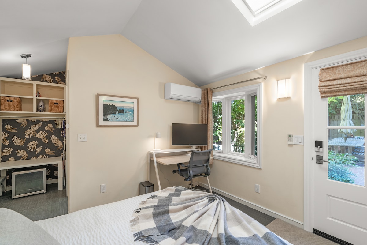 在這個寧靜的度假屋中,點燃火坑,在藤蔓覆蓋的花園中享用晚餐,還有舒緩身心的瀑布。室內裝飾以海灘風格和海岸畫作為主調,自然光線充足,增強了開放式生活的便利性。歡迎攜帶寵物入住,需支付小額清潔費50美元(一次性費用),額外寵物需支付25美元(一次性費用)。 主房間為12英尺x17英尺。 衣櫃長6 1/2英尺。 浴室4 'x5 1/2' +淋浴間3' 3 "x 3 '3"。廚房4 1/2 'x 8"。提供簡單的早餐。 您有自己的私人入口,街上有很多停車位,街區很漂亮。 如果您有任何疑問或需要有關該地區的資訊,請聯絡我們。請至少入住2晚。 小屋位於安靜、安全的街區,居民在愉快的天氣下遛狗。附近的紅木城市中心有商店和雜貨店,高速公路和公共交通工具都很方便。 我們街區的拐角處有一輛巴士,它會帶您前往紅木城市中心或沿著El Camino Real旅行。 市中心也有一個火車站。 寵物-主屋內有2隻小狗,戶外有2隻貓。