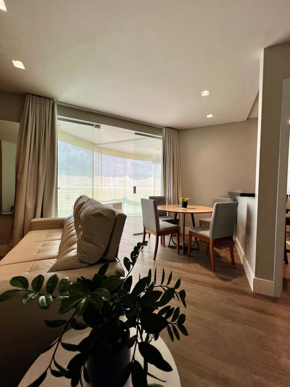 公寓有1間套房、廚房、客廳/餐廳、服務區和美食陽臺。 配有空氣、雙人牀和衣櫃的套房。 廚房配有冰箱、爐子、家居用品和洗衣機。 有線電視和網路、餐桌、沙發和額外的床墊。 私有公寓: 1個車庫、訪客空間、洗衣房、會議室、網吧、玩具圖書館、瀑布泳池、烤肉、球場、遊樂場、帶桑拿和按摩浴缸的健身房、花園、水鏡和便利設施