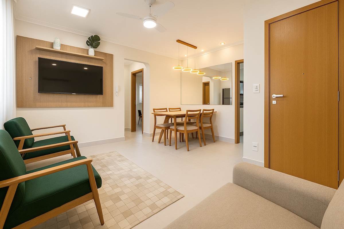 步行僅需3分鐘即可抵達海灘,這間公寓兼具舒適、實用和精緻。 有2間空調套房,以及一間配有55英寸電視的大型空調房間。 廚房設備齊全:爐台、冰箱、微波爐和空氣炸鍋。 餐桌優雅而溫馨,邀請您享受美好時光。 非常適合那些在維拉維爾哈(Vila Velha)尋找安靜時光的人!