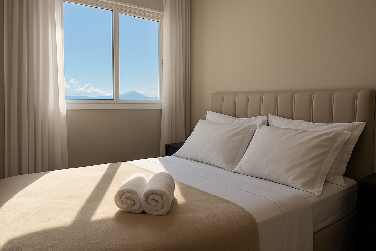 步行2分鐘即可抵達沙灘。 我們提供配有全球最暢銷的高級床墊品牌Simons床墊的套房。 床是雙人床,空間更大! 此外,智慧電視和空調讓環境更加溫馨。 在另一間臥室,我們有一張超級舒適的床 舒適(真的很舒適),配有空調和辦公桌。 大客廳配有電視和陽臺。 我們提供床單/浴巾!全家人都可以入住這個充滿格調的地方。