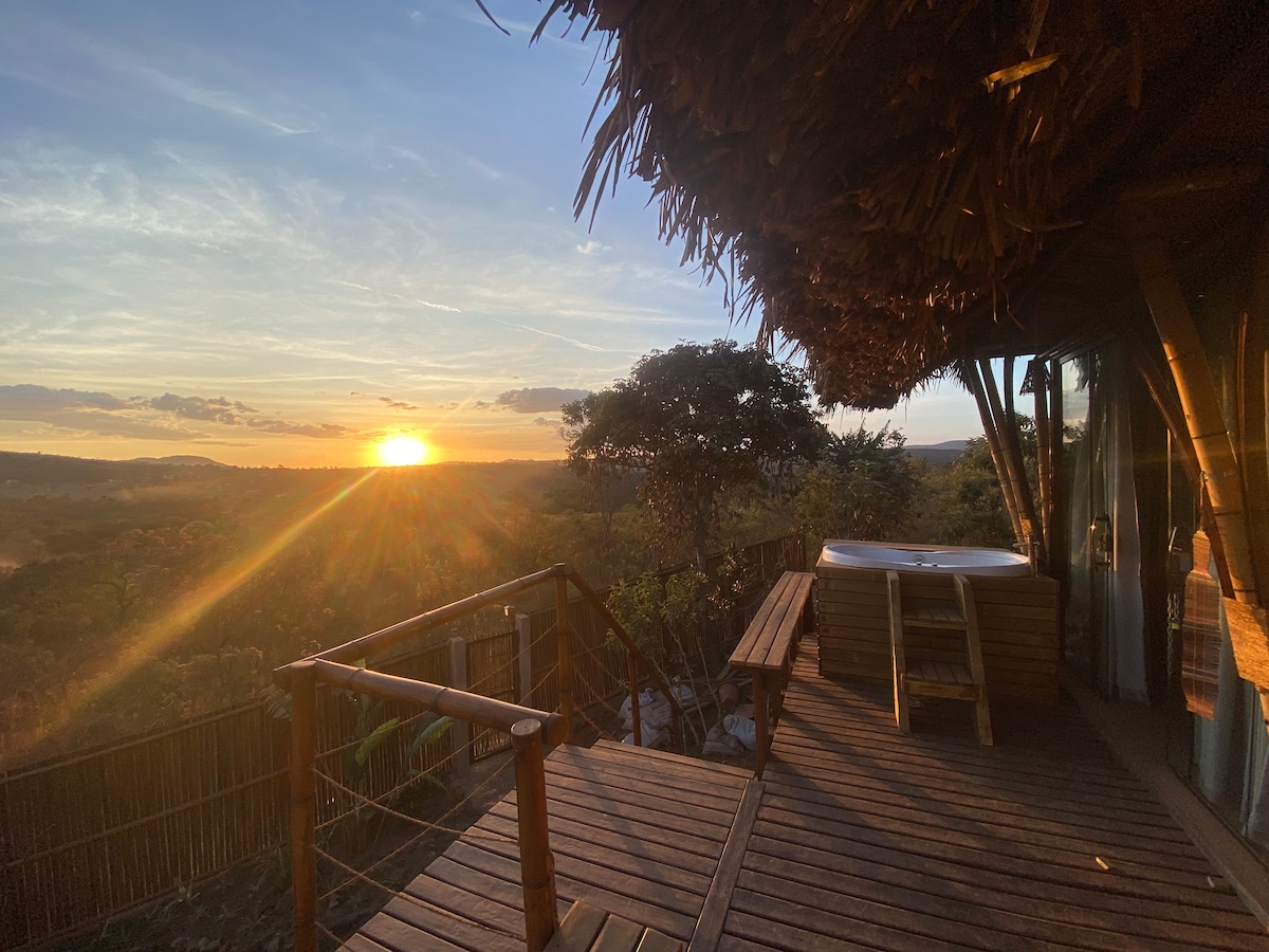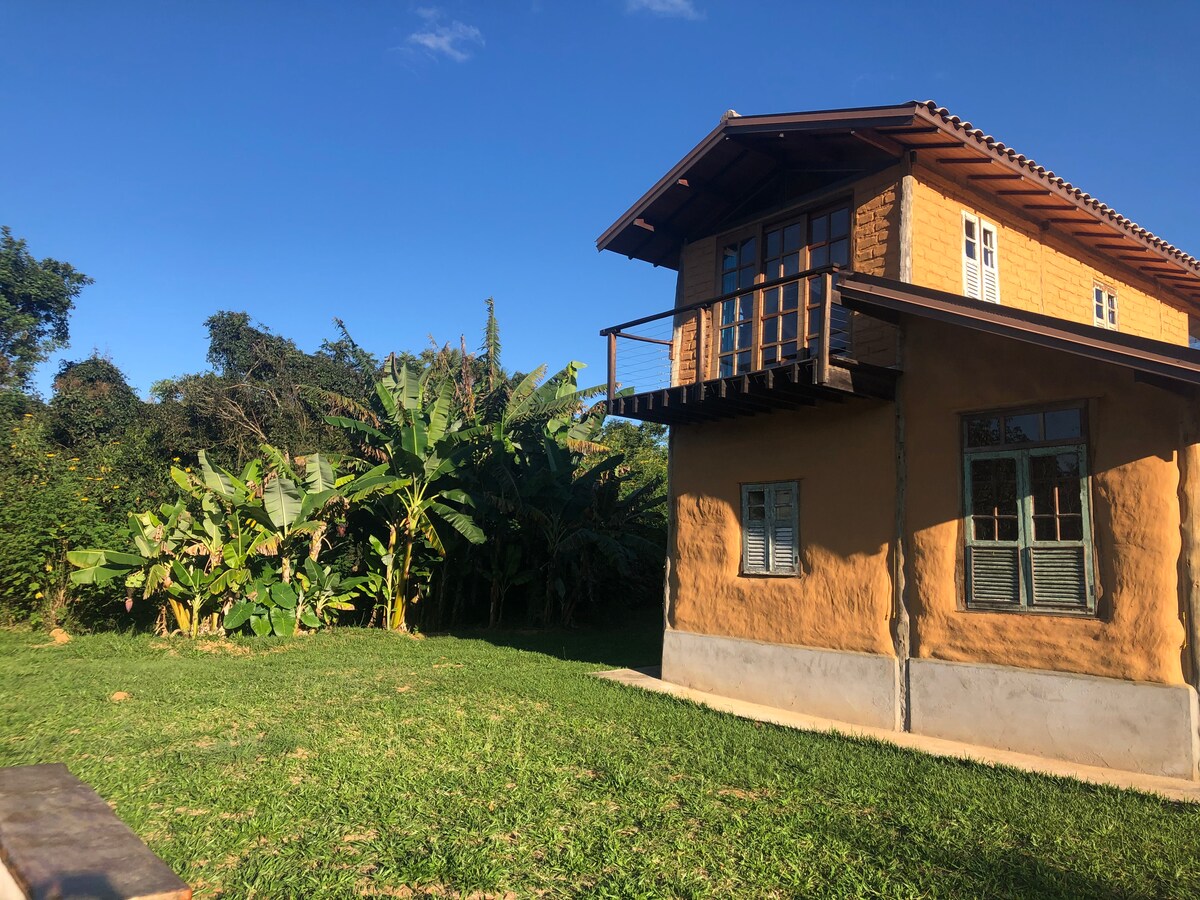 美麗的房子,採用竹子和土磚建造的生態建築。對於那些喜歡與大自然接觸的人來說,頭頂上飛過的金剛鳥和巨嘴鳥,以及山上反射的日出和月亮的美麗景色。 • 非常適合 2 人入住, 1 間雙人床臥室和 1 張閣樓沙發床; • 臥室內有智慧電視。 • Alexa • 室外浸泡浴缸 •距離 Alto Paraíso 中心 1.2 公里; • 可選早餐 •地理位置優越,適合喜歡安靜的人,同時靠近市中心