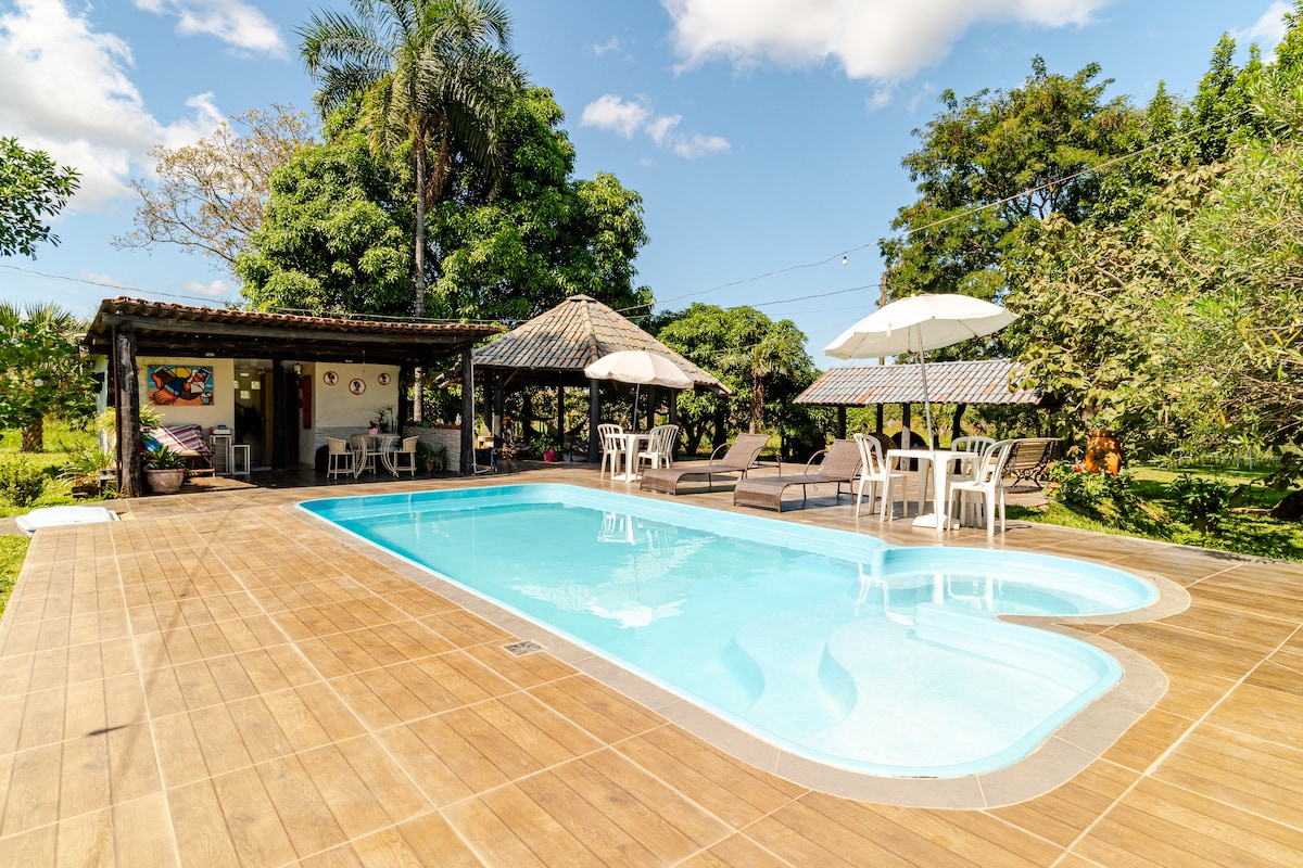 Refúgio para grupos de amigos, famílias e casais no meio do Cerrado . Abrimos nossa casa de campo para aqueles que desejem desfrutar de dias tranquilos e relaxar ouvindo o canto dos pássaros. Nosso espaço conta com área ampla para a montagem de barracas, churrasqueira, forno para pizza, fogão a lenha piscina aquecida, parque infantil, campo de futebol, sinuca, redário , "kombihome", internet e SmartTV. Carnaval: Mínimo três diárias, mais informações no @doceretiro.