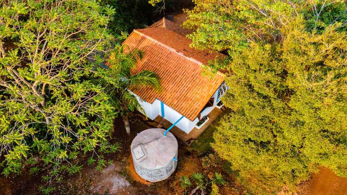 完整的鄉村別🌿🏡墅,有3間臥室、1,200平方米的大樹林後院、帶吊床的陽臺、有蓋車庫、300mb光纖網路和工作區域。我們提供床、桌子和浴室用品。配備各種電器的全功能廚房。靠近市場、藥店和文化空間,附近有原始森林步道和瀑布。為您、朋友和家人提供安靜且安全的住宿。✅️ 第二天有特別優惠。