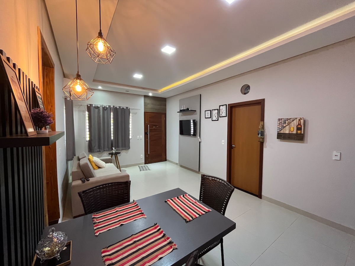 Chapada dos Guimarães的廣闊景色,四周綠意盎然,距離Cuiabá市區僅5公裏,距離Chapada dos Guimarães市50公裏。 大房子,有燒烤和泳池。 安靜的地方,遠離市中心,但不是那麼多。 距離Cuiaba城市廣場5公裏。 距離超市5公裏,大賣場約9公裏。 最多4位房客,價格是固定的。除此之外,請註明計算的數量。 我們不會出租給派對