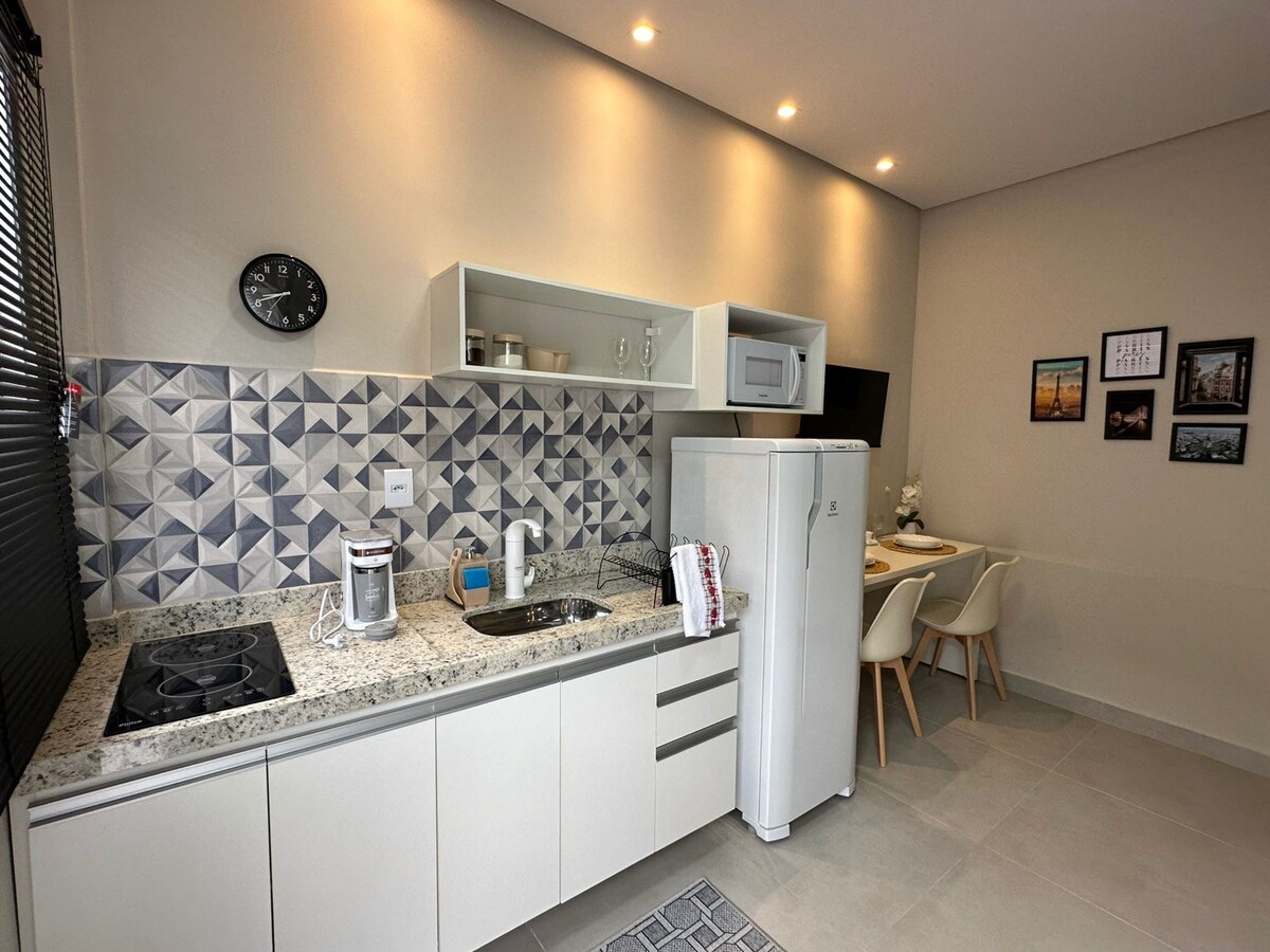 入住這個位於市中心的房源,您的家人將離所有地方都很近。 位於高級社區,位於市內主要大道之一,靠近庫亞巴最好和最大的購物中心,前面有大賣場,附近有最好的餐廳。 為您和您的家人提供實用性和舒適性。 最多可容納3人,包括一對夫婦和一名兒童。 它有電磁爐和所有廚房用具、迷你吧、咖啡機和三明治機。 幾個月前推出的新單間公寓