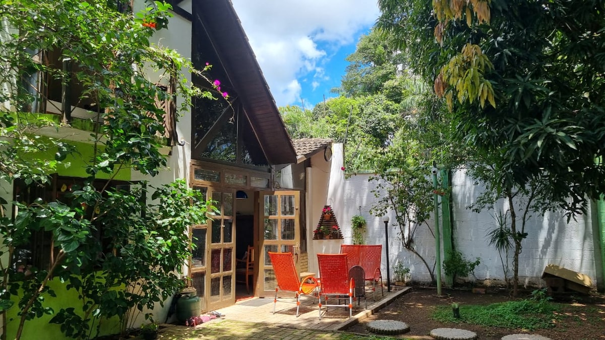 房子位於叢林中,內部廚房配有瓦斯爐,外部廚房配有燃木爐。客廳和浴室有壁爐。 您必須自備床單和浴巾。禁止播放聲音設備的聲音。我們不提供清潔服務