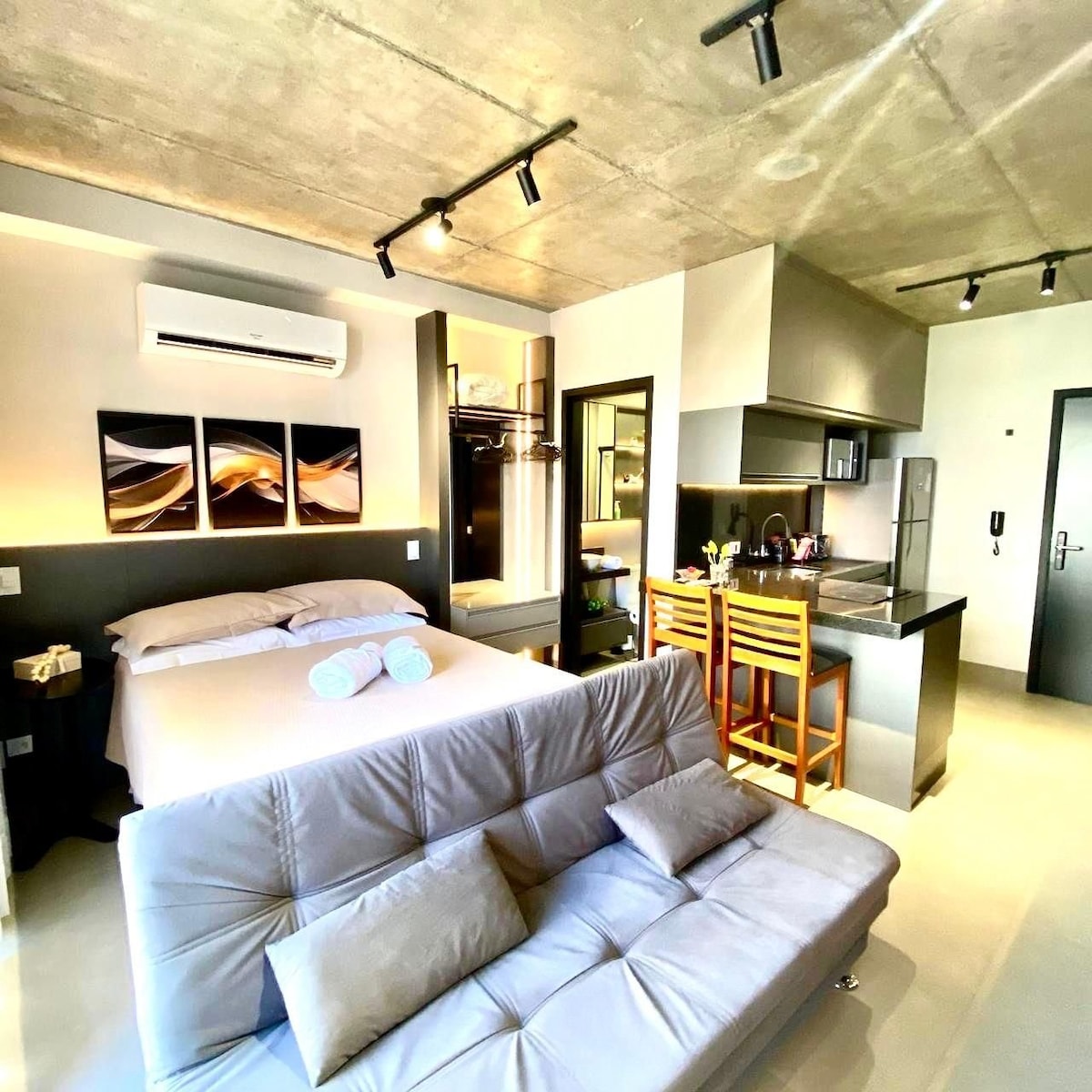 1間臥室公寓,非常舒適! 臥室和客廳有自然清晰度。 房源設備齊全,配備家用餐具。 有傳統的電視和網路。 地理位置非常好,位於Londrina-Pr.的中心地區,靠近超市、餐廳、藥店和巴士線。 歡迎所有背部服務的人士入住!