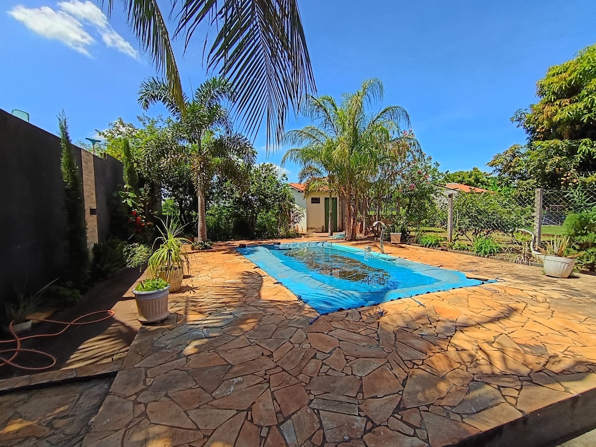 在Chácara Dream of the Warrior享受悠閒、休息和與大自然連結的時刻! 一個完整的空間,讓家人和朋友聚在一起,享受舒適和保證的樂趣。 完整🏡 結構: ✅ 泳池 ✅ 海灘球場 ✅ 撞球桌 ✅ 設備齊全的廚房 + 烤肉 ✅ 4間配備空調的臥室(2間套房) 波馬爾(✅Pomar) ✅ 健行和探險健行 📍 位置:靠近Furnas do Dionísio ,位於Jaraguari/MS。