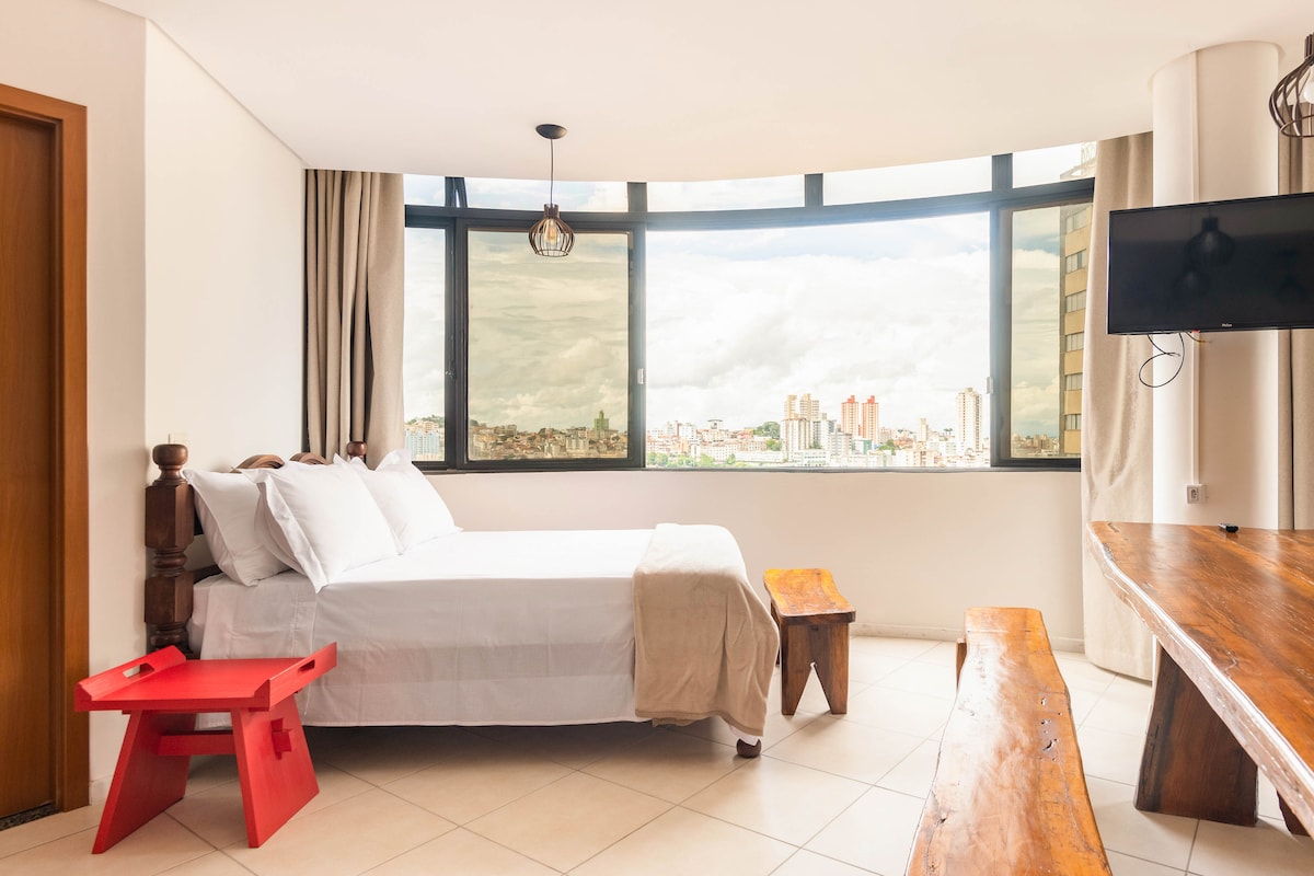 豪華閣樓,45 平方公尺,空調、4 人桌和檯面、全套廚房、洗衣機、烘乾機、Nespresso 咖啡機和其他便利設施。 非常寬敞,配有雙人床、1 張沙發床和 55 吋智慧電視,配有 WiFi 和網路。景觀美麗! 公共室外區域:全套健身房、洗衣房、溫水泳池、按摩浴缸和桑拿房。 位置優越,靠近鑽石、醫院。Materdei、BH中央市場、Supernosso等。 1 個空位和 24 小時門房 讓您感到賓至如歸的設施!