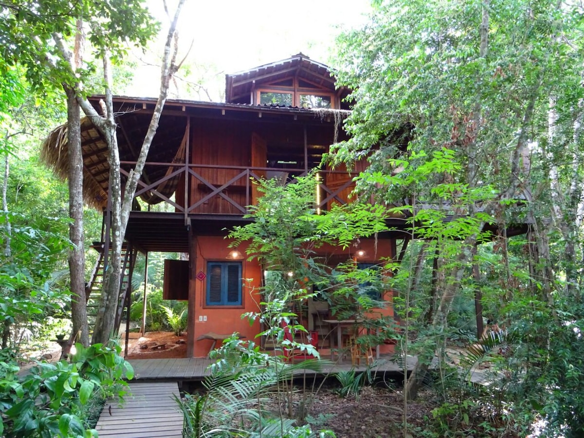 Lugar de bastante acolhimento e tranquilidade para você e sua família! Um espaço enorme para você explorar em meio à mística Floresta Encantada da vila, com trilhas e igarapés pela Floresta. Está localizado a 3 minutos de carro da Vila de Alter do Chão.