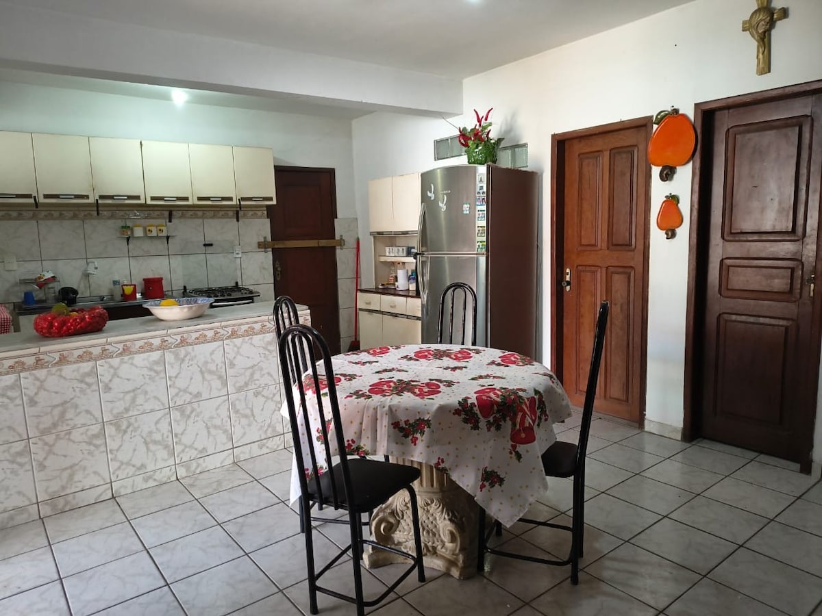 Casa imersa em belas paisagens naturais, localizada em uma comunidade tradicional amazônica. Está à 3km do centro de Alter e 1,5km das praias de Alter e 800m dos Igarapés do Caranazal. Ótimo espaço para atividades em família, há restaurante e cultura tradicional perto. Você vai se encantar com o espaço por causa dos animais silvestres que visita a casa diariamente, o ambiente, o bairro e a área externa. Espaço ótimo para casais, aventuras individuais, crianças e animais de estimação.