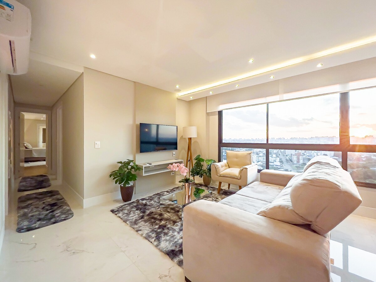 歡迎來到我們的豪華複式公寓!在這裡,您將找到精緻與舒適之間的完美平衡,為您提供真正卓越的住宿體驗。從 37 樓(目前是庫里提巴最高的建築)可欣賞壯麗的景色,照明、可欣賞壯麗景色的辦公桌、快速 WiFi、55 吋智慧電視,這些都是我們的獨特之處。 *注意:不適合 12 歲以下兒童入住,複式公寓配有通往套房的樓梯和無防護的陽台。
