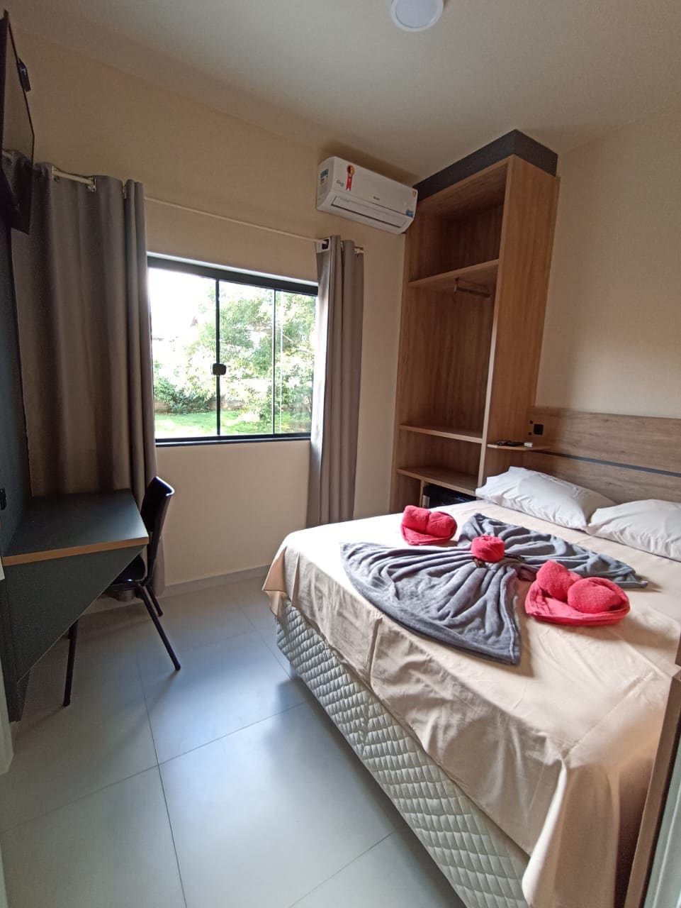 套房內有一張雙人床。 配有WiFi、空調、智慧電視和保險箱。 私人浴室包括毛巾、洗髮精、護髮乳、香皂和吹風機。 大樓位於Avenida das Cataratas,提供設施,方便您使用。 大樓內有自助洗衣店、外幣兌換、旅遊社、租車、地鐵和24小時便利店,隨時可使用自動櫃員機進行銀行業務。