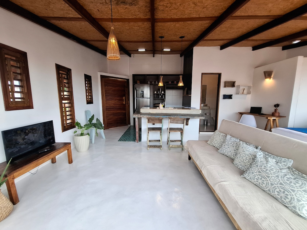 Refúgio charmoso, claro e muito ventilado na Vila de Jericoacoara, com bela vista panorâmica e ampla área externa com rede. Ideal para casais ou para temporada de kite/windsurf com home office, o loft oferece cozinha completa, cama confortável, ar-condicionado, banheiro amplo com água quente, smartv, espaço de trabalho e enxoval de qualidade. Em bairro residencial seguro e tranquilo, a 10 min da praia e do centrinho, com fácil acesso aos carros gratuitos.