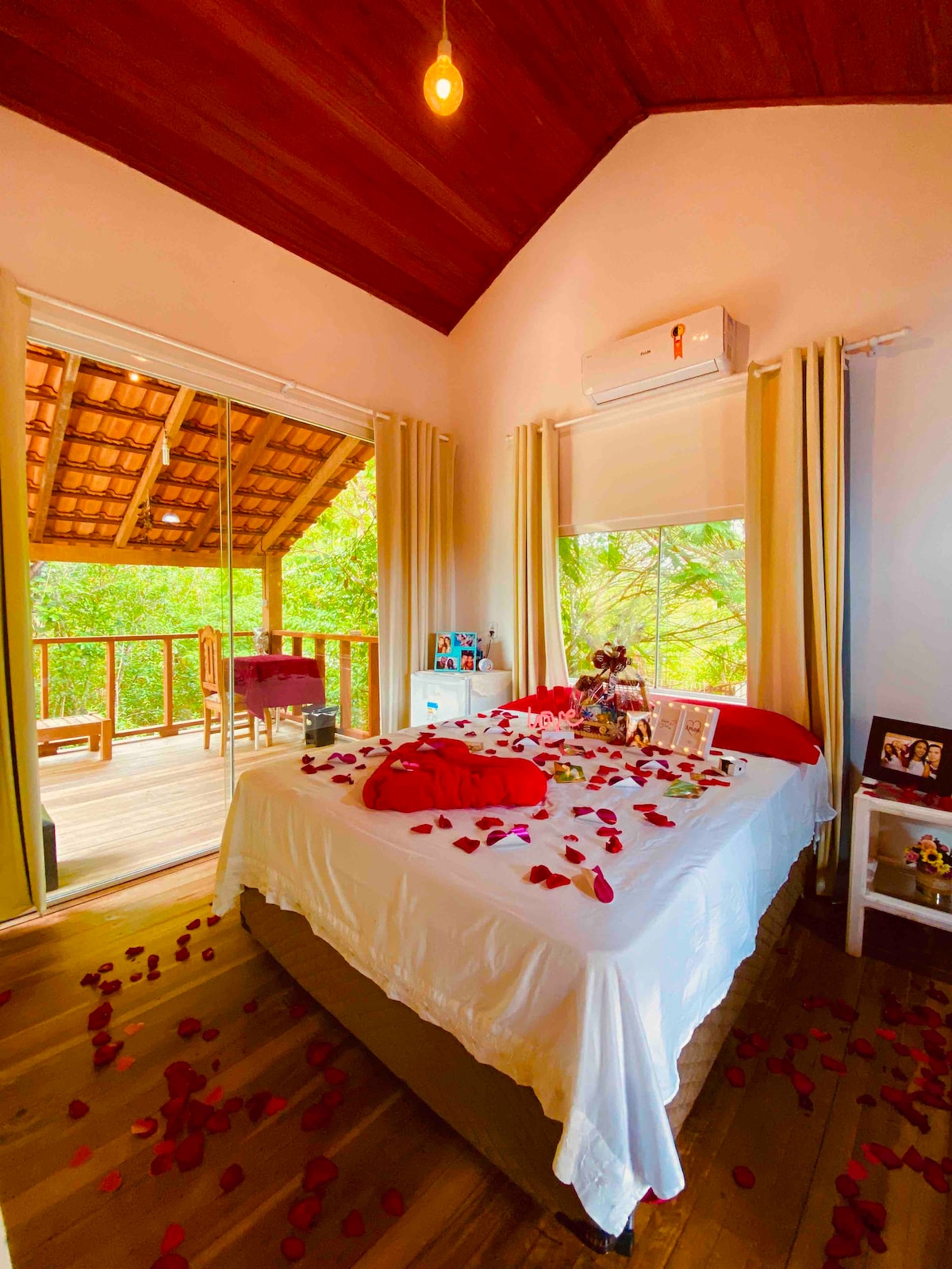 Surpreenda-se com o lado romântico do interior de Rondônia! Um refúgio privativo em meio à natureza nativa, ideal para casais que buscam paz, conexão e momentos especiais. Aqui, o silêncio da floresta, o canto dos pássaros e o céu estrelado criam um cenário inesquecível. Simples, mas encantador — perfeito para quem valoriza o essencial e quer viver algo verdadeiro, longe da correria e perto do que importa.