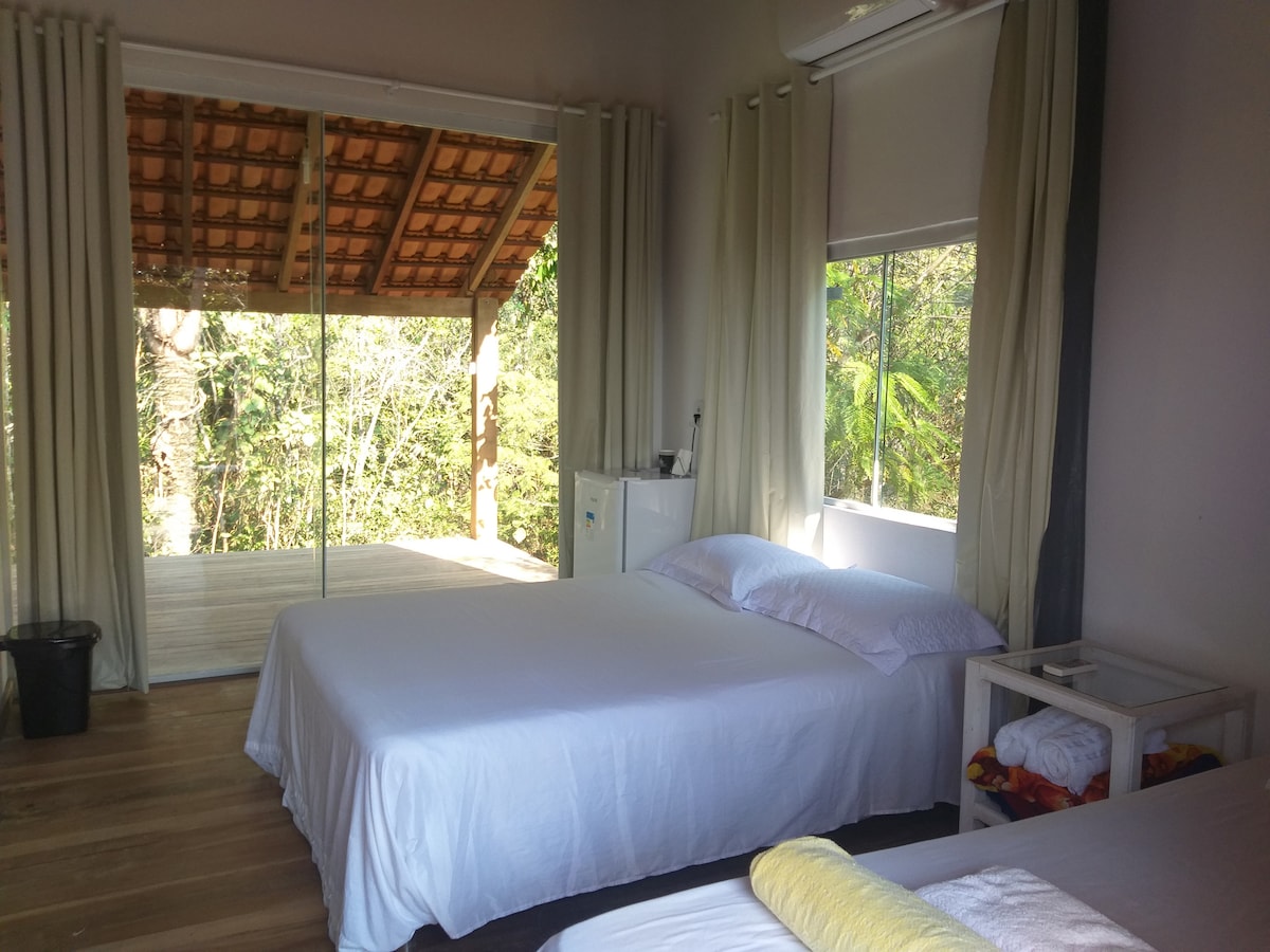 Chalé Familiar有一間只有夾層和陽臺的房間。 夾層有一張雙人牀,下方有一張雙人牀和三張單人牀。 金額為每人170人,最多可入住6人。 一至六人可入住兩張雙人牀和Treis單人牀。 房間內有獨立浴室,廚房外面有爐子和冰箱。