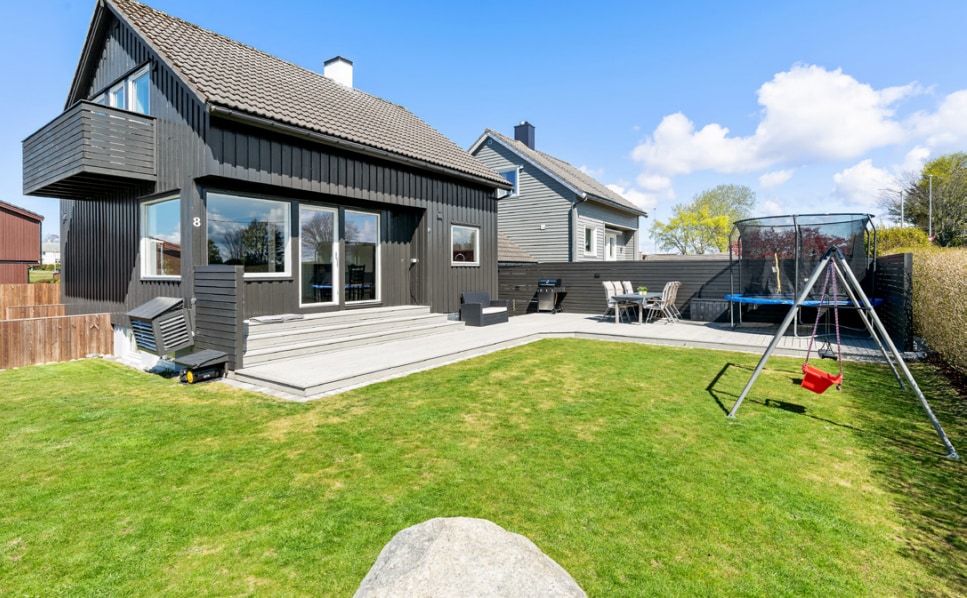 Barnevennlig familiebolig 10 km nord for Stavanger sentrum. Huset er romslig med minimalistisk stil og stort uteområde med terrasse, hage, trampoline, grill og sittegruppe. Gangavstand til dagligvarebutikk (300 m) og nært lite sentrum med butikker og caféer (700 m). To strender i nærheten: Vistestranden (2,5 km) og Sandestranden (3,5 km). Området byr på volleyball, fotball, golfbane, svømmehall og treningssenter. Nærhet til fine turområder. Perfekt for familier i rolige, landlige omgivelser.