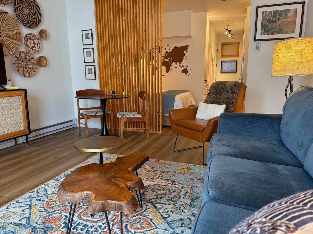 更新舒適的山腰公寓,距離滑雪山僅5分鐘,距離市中心僅短暫車程:新地板、浴室和瓦斯壁爐 -全尺寸、儲備充足的廚房,配有普通和Keurig咖啡 -獨立臥室+舒適的加大雙人床 -大客廳:皮革躺椅沙發、50 吋電視、高速 WiFi、串流(Netflix、Amazon Prime 等)。 -房源內有洗衣機和烘乾機 -泳池和按摩浴池在後門外 -免費巴士站:從公寓門口步行即可抵達:巴士站就在公寓大樓:5分鐘即可抵達滑雪山