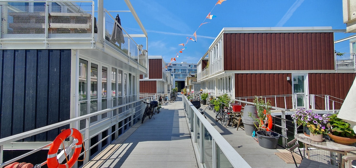 完美的浪漫度假勝地,可供兩人入住,放鬆身心,享受私人桑拿和家庭電影院。 香檳、玫瑰葉、巧克力和小點心的選擇。 有人稱它為「愛情船」 (有些人會和最好的朋友一起去放鬆身心) 您將入住最近翻修的前貨船,在阿姆斯特丹的IJmeer擁有私人停泊! 想出去嗎?乘坐電車前往中央車站不到15分鐘,每6分鐘一班,直到00:30 含早餐套餐