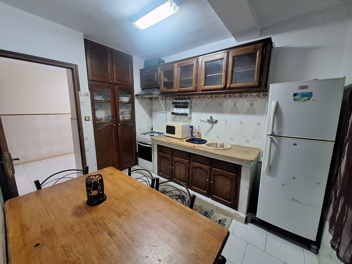 享受優雅的中心位置住宿。 適合家庭入住 位於莫斯塔加南(Mostaganem)的全新三房公寓(Salamandre區) 距離海濱 300 公尺(餐廳、咖啡廳、冰淇淋店等) 距離電車站 200 公尺(電車站就在莫斯塔蘭主題公園前面) 街區設施齊全(清真寺、麵包店、蔬果店、肉店、便利商店等) 設備齊全的公寓(洗衣機、電磁爐、微波爐、水壺、Nespresso 咖啡機、空調等)