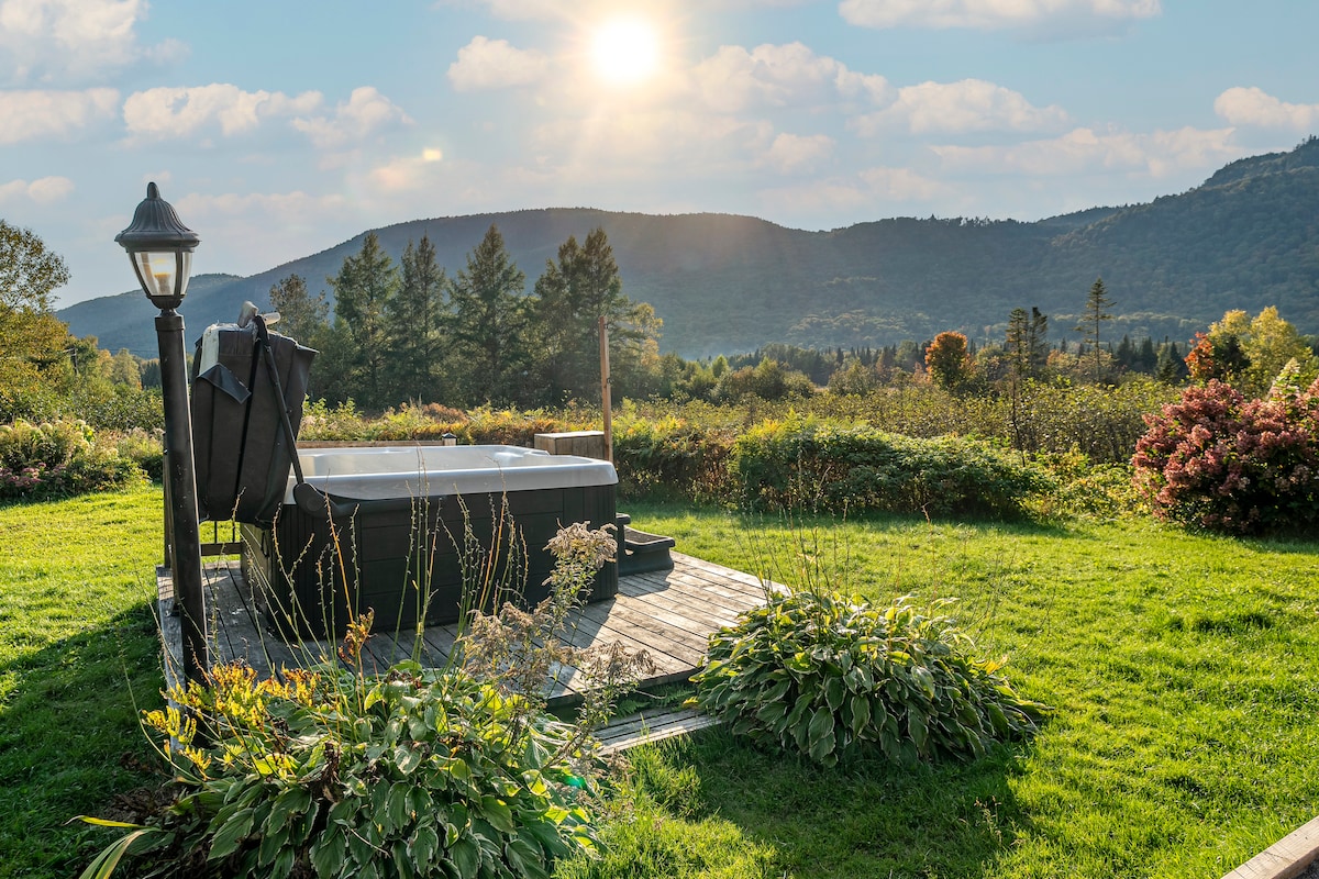 我們的度假木屋位於山頂,將以迷人而私密的裝飾迎接您的到來。進入房源後,您可以在巨大的燃木壁爐前放鬆身心,同時欣賞斜坡美景。 設備齊全的廚房可讓您在餐廳烹制美味的餐點,餐廳最多可容納14人。 臺球桌、按摩浴池和篝火將於晚上結束。 CITQ : 245545 4星