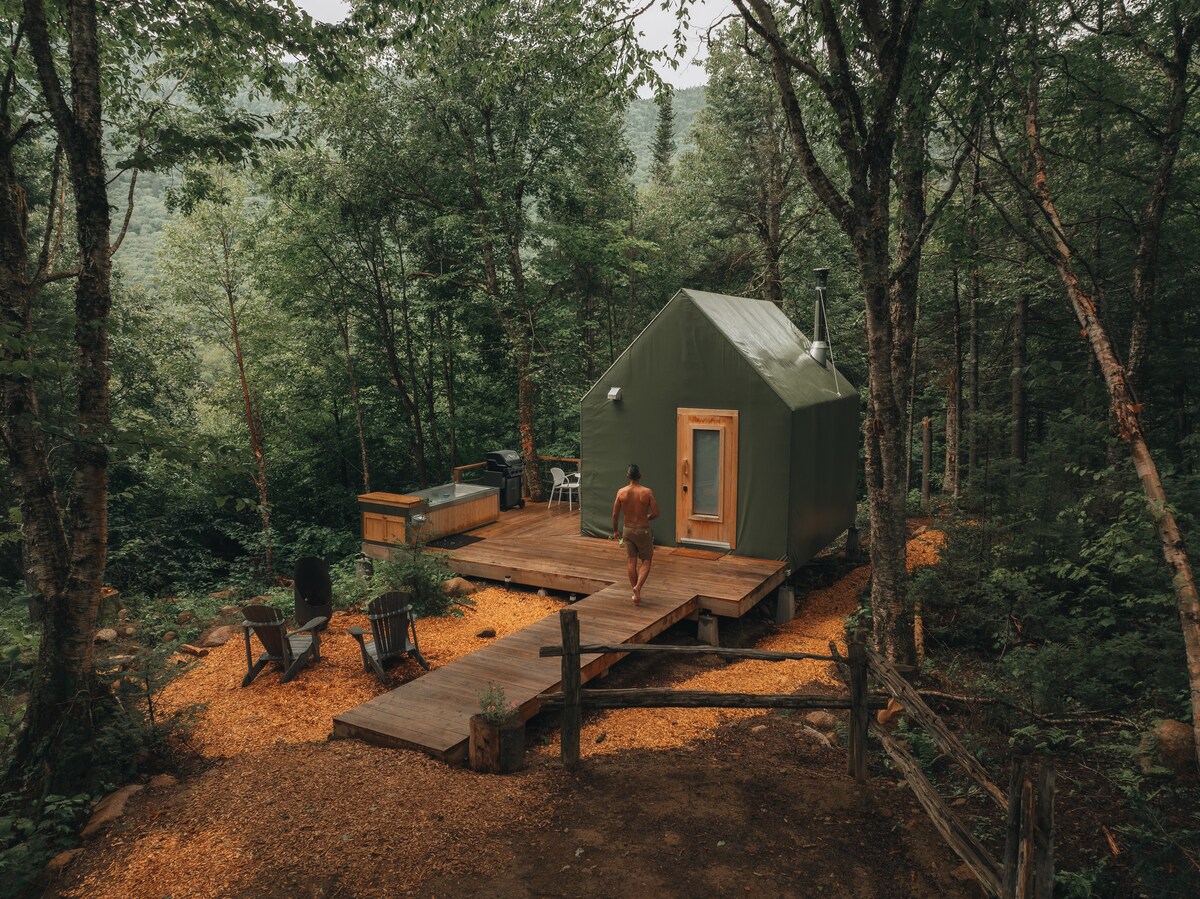 Tricera 位於史前時代就已經存在的岩石上,坐落在 Sentiers du Moulin 山地自行車和戶外網絡的中心,邀請您前往 Mont Tourbillon 的 Maelström 頂峰。 透過360度窗戶,您不信這麼靠近魁北克市的山景。從 4 個不同的展廳中選擇,在私密中放鬆身心。Tricera 將豪華露營提升到另一個層次!