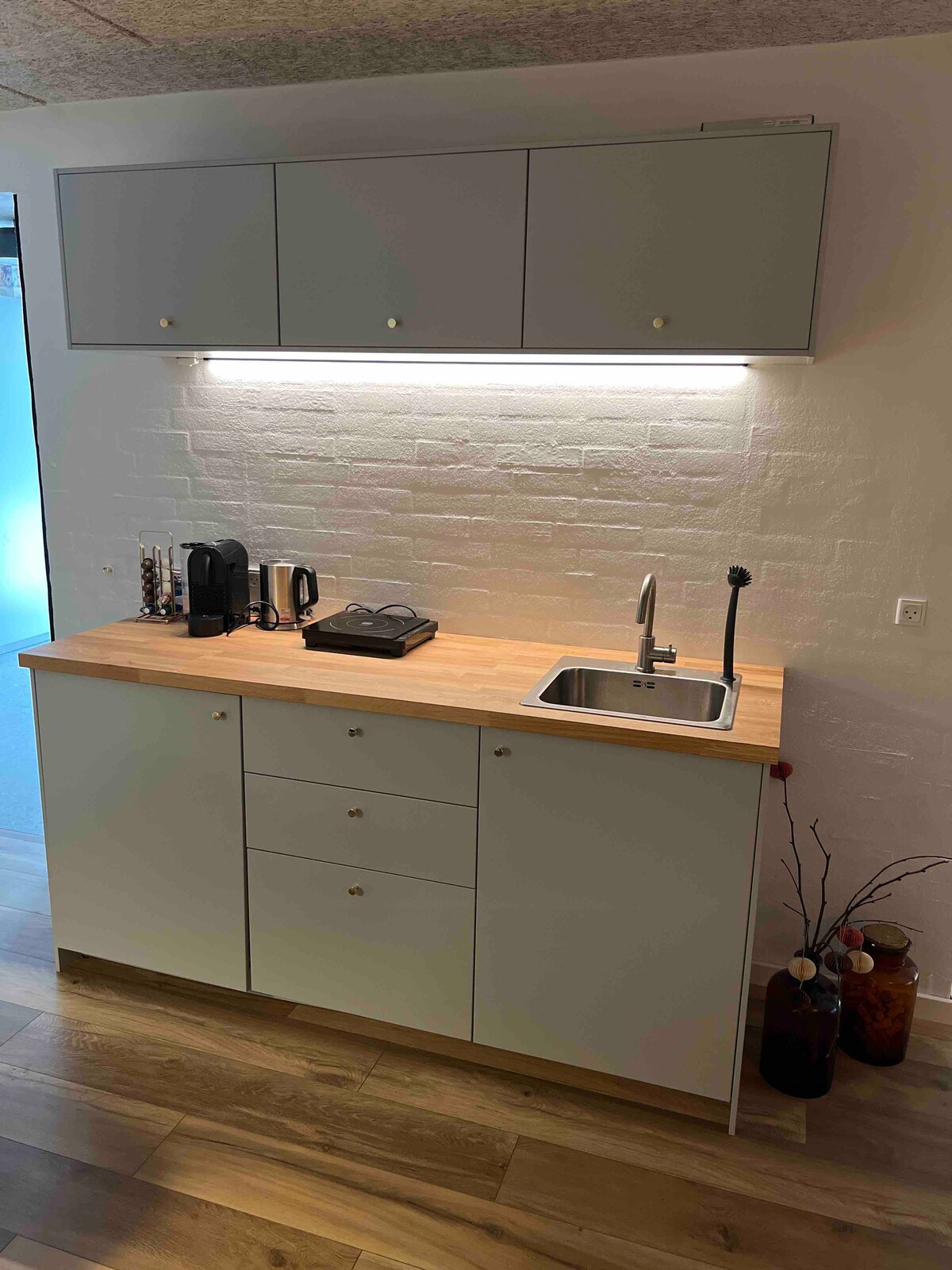 Welcome to our beautiful Container Home in the middle of nowhere - still providing everything you need. Now with a Hot Tub under the stars! You'll take a hot bath in the woods, gaze into the fire pit, wake up to the sound of the birds, drink your coffee next to a deer - all while using high-speed WiFi for your favourite Netflix show in the cozy queen size bed. With love, we made sure to use the space most efficiently to create the best experience for you. *Heated and warm in winter 🙂