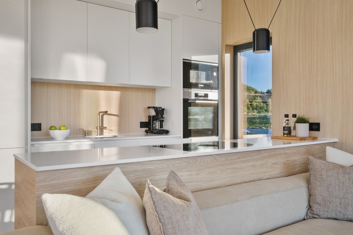 位於海邊的現代小屋,可欣賞美景。 在這裡,您可以找到完美的度假村,在那裡您可以放鬆身心,欣賞海景和雄偉的山脈,並可以在不離開小木屋的情況下自行釣晚餐。 很棒的釣魚和徒步旅行機會。 附近有24小時全天候商店和咖啡廳,著名的Kvitnes Gård餐廳僅8分鐘車程。