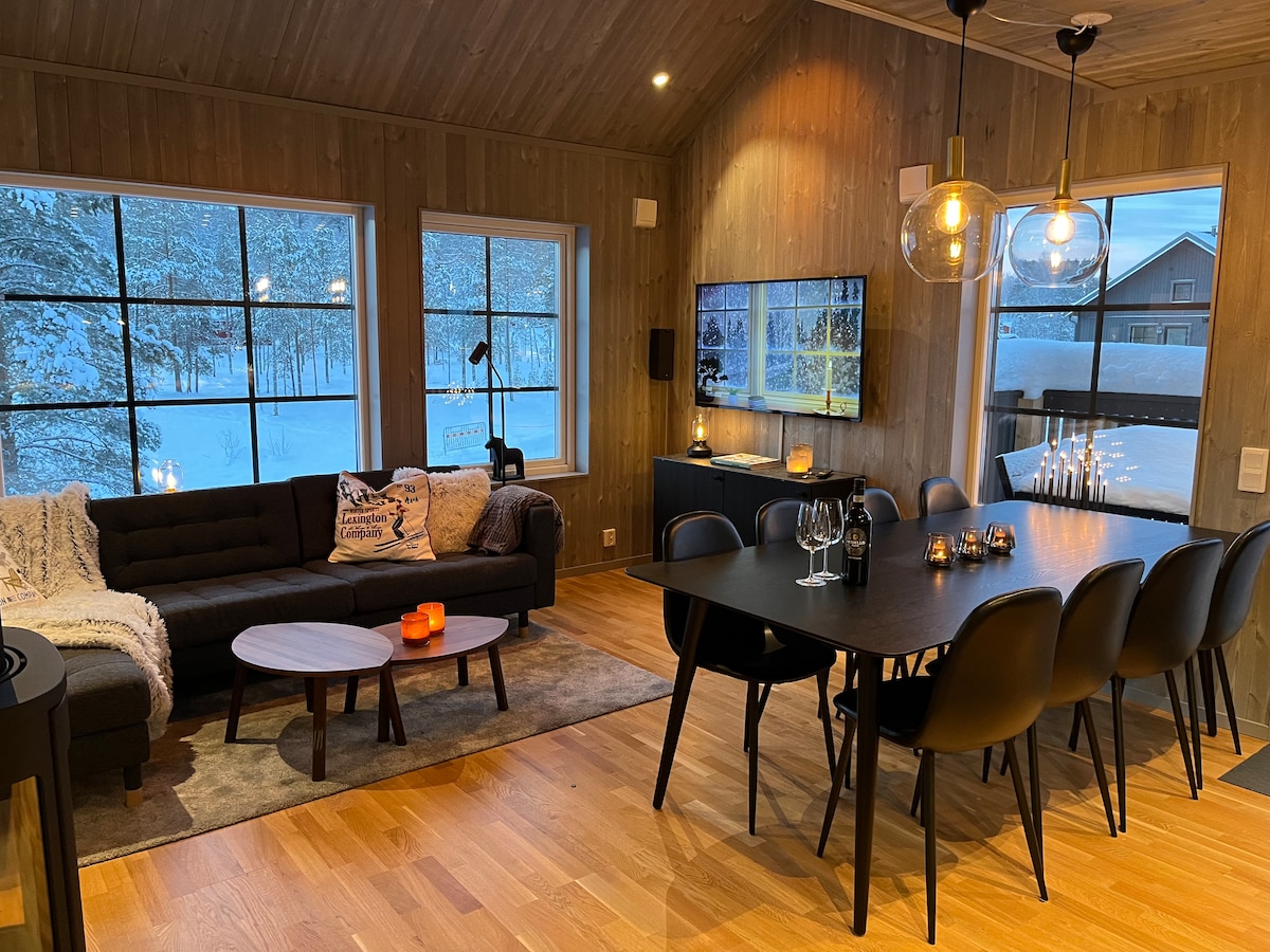 在這個寧靜的空間與家人一起放鬆身心。 可欣賞滑雪道和挪威山脈的景色。 房子配有所需的所有設備。4間大臥室和一間帶沙發床的電視房。共有3臺大螢幕電視。 滑雪進出 12人 壁爐 桑拿 戶外壁爐 整套房子都有Sonos,甚至在外面 wiFi 洗衣機/烘衣機/晾衣櫃 滑雪靴烘乾機 10 對 電動車充電器 每層樓都有廁所 開車約3分鐘即可到達山坡 請自備床單和毛巾 按摩浴池為獨立使用