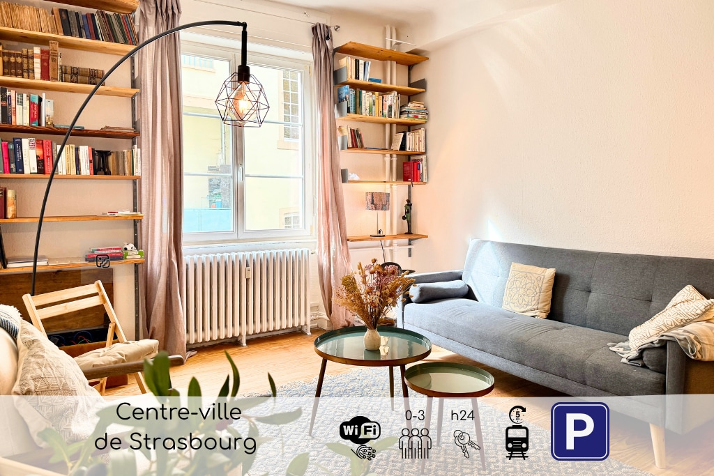 這間公寓位於斯特拉斯堡市中心,距離大教堂200米,坐落在一條安靜的行人小街上,充滿波西米亞精神:時代精神的酒吧和餐廳、畫廊和時尚商店。 入住我們擁有現代和典型魅力的單間公寓,盡情享受斯特拉斯堡。 這間公寓位於斯特拉斯堡市中心,距離大教堂200米,位於安靜的行人街上。 在我們現代化和典型的公寓中享受在斯特拉斯堡的美好住宿。