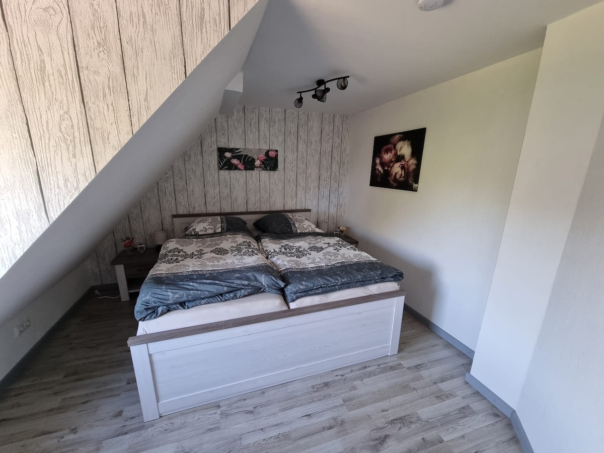在我們舒適的公寓中,您會感覺像在家一樣,靠近海灘和森林,靠近弗倫斯堡市中心和丹麥邊境。公寓位於一棟獨棟房屋的地下室,位置安靜,可俯瞰公園般的花園 公寓配有設備齊全的小廚房、客廳和用餐區、帶雙人床的臥室以及帶浴缸和獨立馬桶的浴室。 室外有頂棚的木製露台 快速 WiFi 和 4K 智慧電視