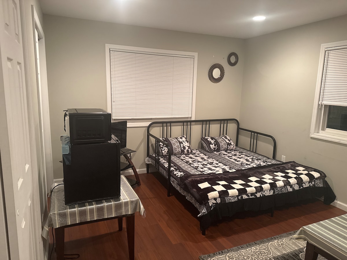 Cozy Modern Getaway in Centereach! Perfect for students, medical visitors, and travelers. Relax in a bright living area with 55” Smart TV+PS5, dine at a 2-seat nook, and cook in the well-equipped kitchen with refrigerator, microwave, coffee maker, popcorn machine, cookware, dishes, glassware and more. Bedroom with fresh linens, (queen size bed), clean bathroom, fast Wi-Fi 300 , AC/heat, and free parking. Close to Stony Brook Univ 13 min, Port Jefferson Hospital 15 min, and Suffolk College 5 min