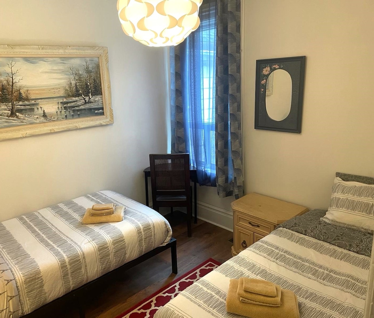 非常安靜的三樓房間,帶雙人床,面向附近後院的樹木,新浴室距離幾步路。 窗戶朝向東邊的日出。 步行4分鐘即可抵達安大略湖沿著Sunnyside Beach的木板步道,步行3分鐘即可抵達High Park ,步行7分鐘即可抵達熱門且悠閒的Roncesvalles Village區域,有商店、餐廳、咖啡廳和酒吧,有現場音樂、24小時健身房和多倫多最古老的電影院The Revue Cinema。