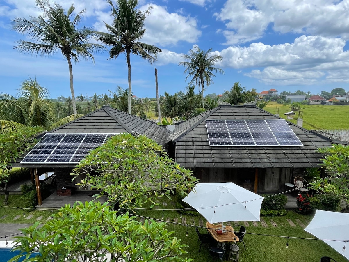 Welcome to Villa Dwipa ☀️ A place where you can indulge yourself in the beauty and luxury of a completely private Bamboo Villa and all it’s facilities surrounded by peaceful nature 🍃 From a dive in the private pool, watching a movie on the drop down cinema screen and having a neighbor-less party in the living room to spending peaceful quality time, cozily unwinding on the balcony and everything in between, whether you're friends or lovers, we guarantee you a good time 😊