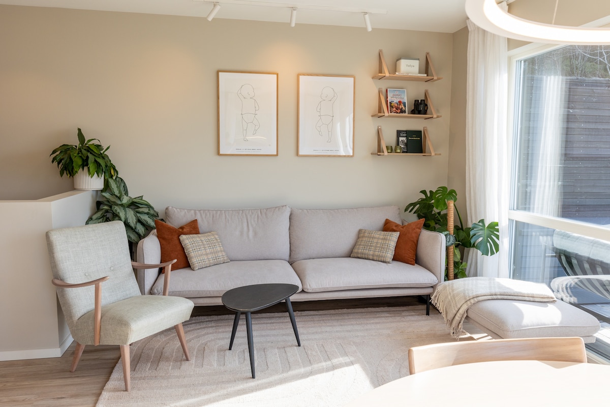 Slapp av på dette landlige stedet. Boligen er ny, har høy standard og ligger midt i smørøyet for tur. Barnevennlig og rolig!