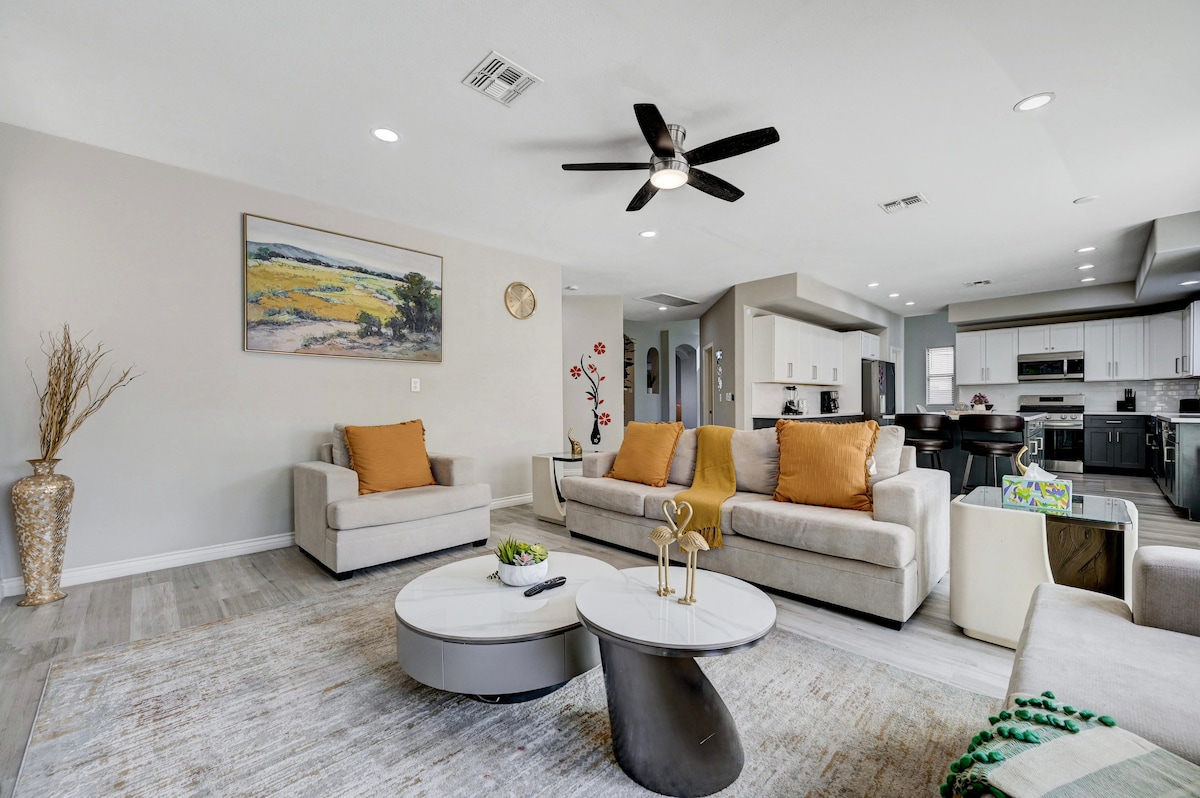 🌴 Long term visitors welcome! Private pool + spa (complimentary spa heating), cardio room, Samsung appliances, and modern upgrades throughout. Typically about 15–20 minutes to the Strip depending on traffic and destination. This 2400+ sq ft renovated home features one-of-a-kind furniture, an 8ft sparkling chandelier, marble-style flooring, and a 75-inch Samsung 4K TV! NOTE: This is NOT a party space. Please be respectful of the rules and the lovely neighbors.