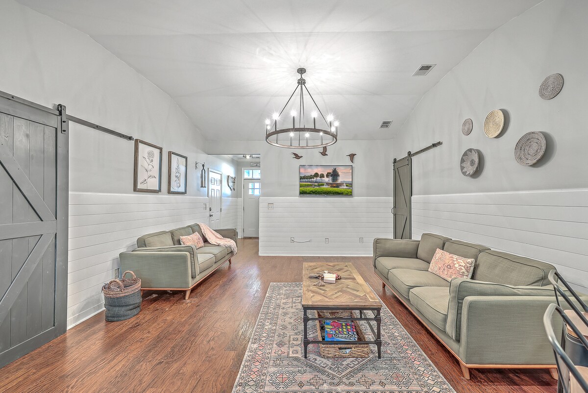 新翻修的舒適小屋提供您和您的家人正在尋找的低地體驗。享受位於查爾斯頓市中心安靜且熱情好客的社區Riverland Terrace。開車前往市中心僅需10分鍾,前往Folly Beach僅需15分鍾,前往查爾斯頓國際機場僅需20分鍾。廚房備有充足的食物,咖啡吧包括咖啡和Nespresso咖啡舒適的加大雙人床、雙人床、全尺寸床和2張單人床。2英里內有雜貨店。舒適的加大雙人床、雙人床、全尺寸床和2張單人床。免費停車、快速WiFi、寵物友善。