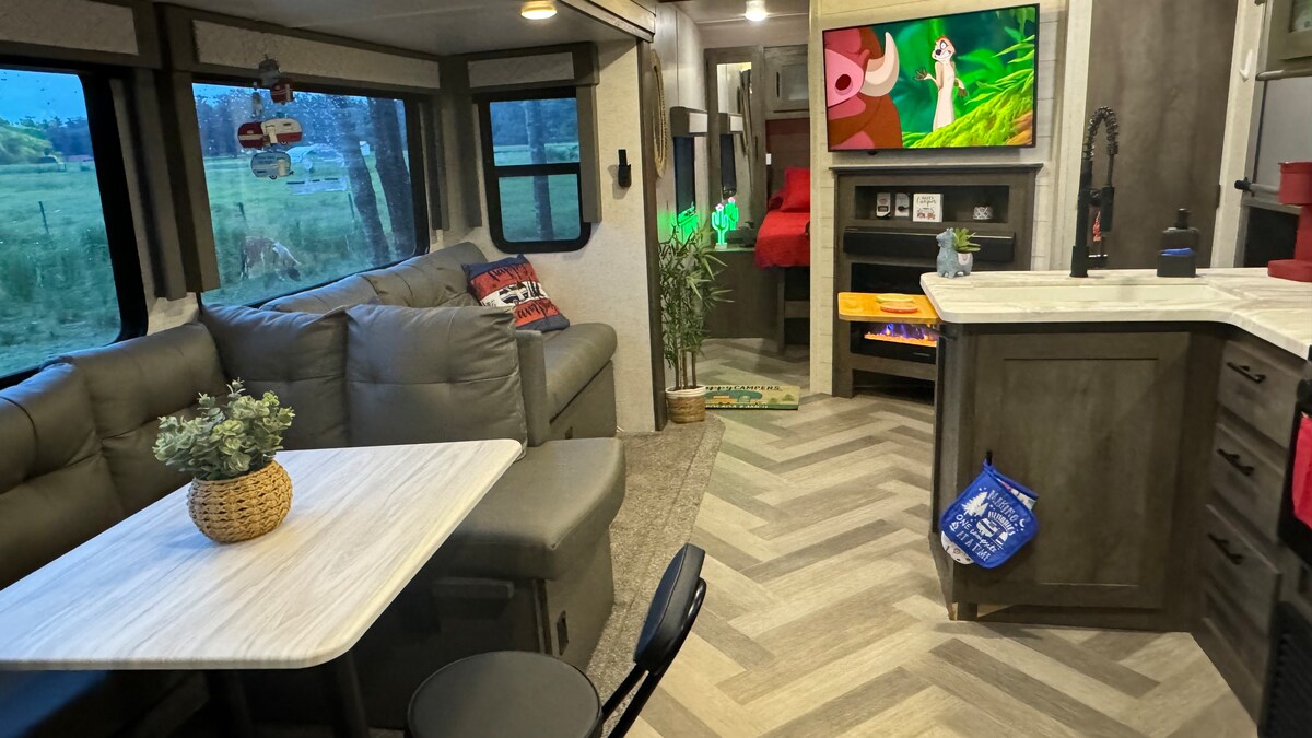 曾經夢想過入住葡萄園嗎? 您找到了我們,讓我們讓您的旅程成為難忘的體驗,無論是在葡萄園、迪士尼的Fort Wilderness還是當地的露營地。 提供配備齊全的冰箱(收費):請傳送清單,我們會為您採購。 這款美麗的2間房露營車配有主臥室的全床、兒童房的4張雙人床、客廳的桌子和沙發,可變成全床。 全套廚房和冰箱。 舒適度與隱私度,讓您的度假旅程更加舒適! 你今天預訂這些日期。