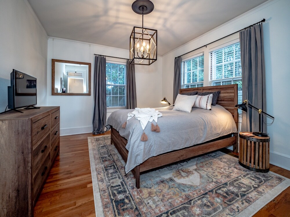 Moise Manor是一棟1934年的平房,位於薩姆特市中心。 Moise距離Shaw AFB、Prisma Health、Sumter VA Clinic和市中心僅幾分鐘路程。超過1700平方英尺的起居空間、現代化的更新和歷史魅力,有足夠的空間可容納整個家庭。享受門廊、在露台上用餐或在室外火坑周圍娛樂。專屬工作空間可讓您在家工作,三間配有智慧電視的大臥室為每個人提供個別的綠洲。
