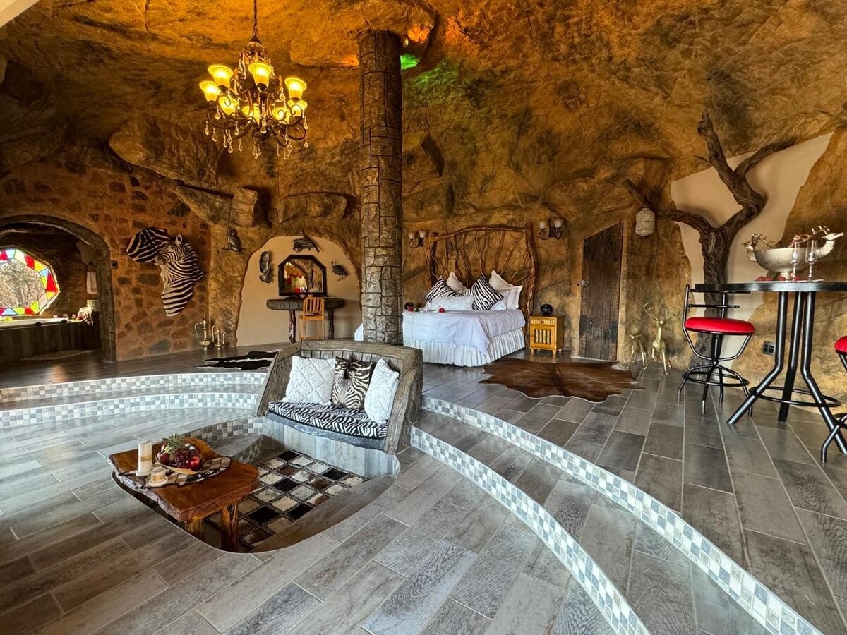 隱藏在山坡上,可俯瞰白楊樹森林和遠處的山脈,您會發現蘆薈巖洞。 非常僻靜和安靜,有令人嘆為觀止的非洲日落。 距離Eljance Game Breeders農場的N4高速公路僅8公裏,距離OR Tambo機場僅2小時車程。 這個地方真的是獨一無二的,配備了所有的奢侈品,讓您擁有難忘的住宿體驗。 任何自然愛好者的必去之處。