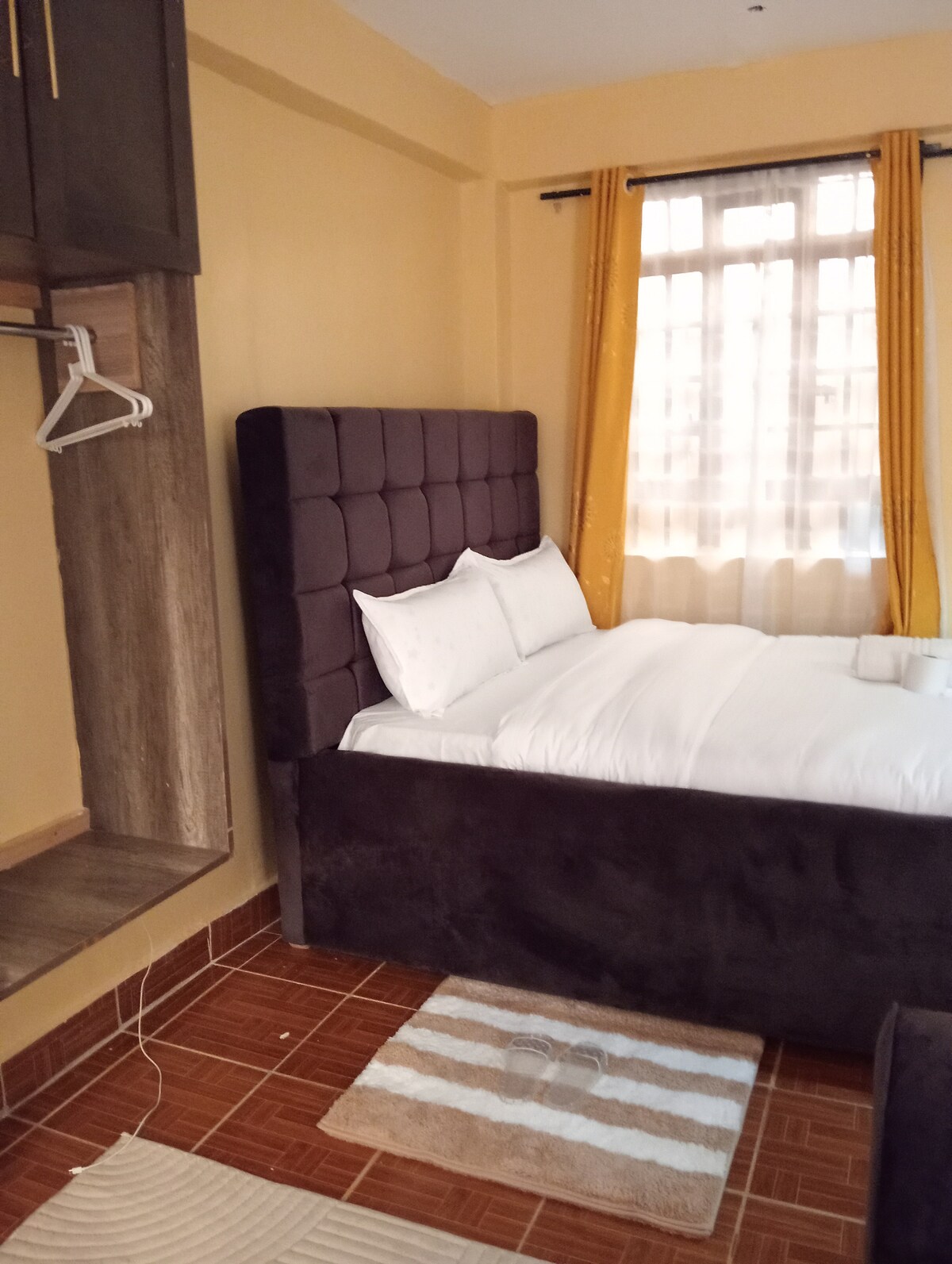 Forget your worries in this spacious and serene space. This own compound studio apartment is located in the heart of Kisii town . Super cozy with a touch of rustic modern themed designs . We also have a workstation for our corporate clients .