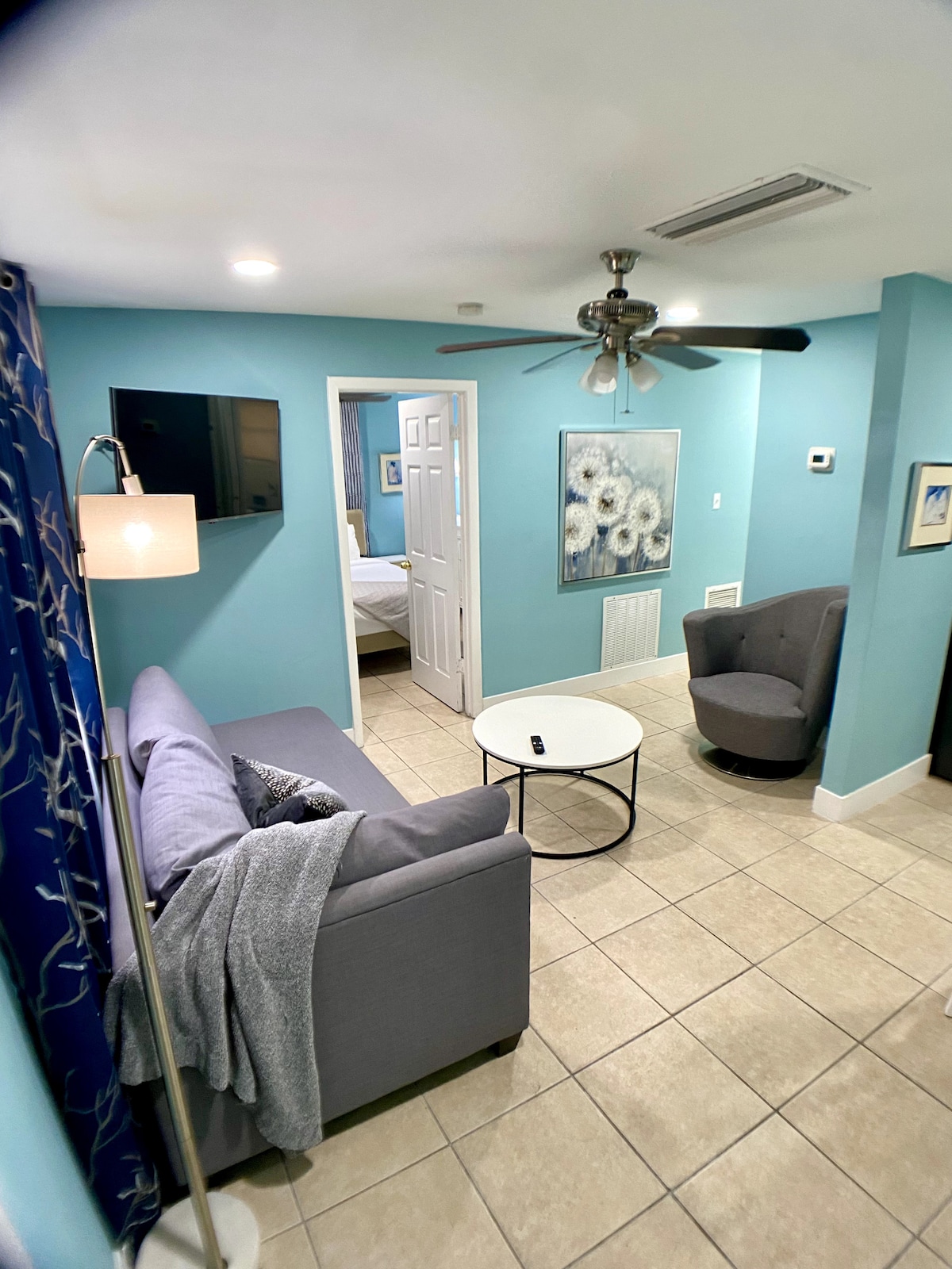 這是新翻修的中世紀現代度假屋,位於彭布羅克松樹市中心。這間舒適的單間公寓是短期住宿的理想選擇,配有全套廚房、精美的衛浴和寬敞的起居區。舒適的雙人床和日式床墊可展開成雙人床,讓您放鬆身心。 包括免費咖啡、盥洗用品、高速WiFi和配有串流應用程式的智慧電視。 在充滿活力的彭布羅克派恩斯 (Pembroke Pines) 的這個迷人的空間中,沉浸在舒適和時尚中。
