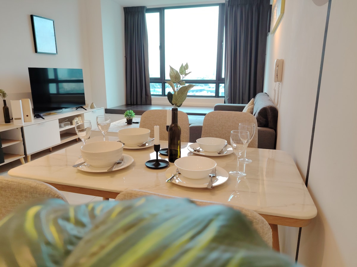 歡迎來到我們位於Subang Jaya的精美單間公寓。我們的舒適公寓配備舒適住宿所需一切設備,包括配備Netflix/YouTube/電視盒的60吋LED電視,配備最新電影和100多個全球頻道。放鬆身心,使用我們設備齊全的廚房設備享受輕鬆烹飪。這個區域前往LDP、NKVE、聯邦高速公路超級方便。距離LRT站僅一步之遙。此外,車站下方有一個很棒的商場,可滿足您所有的零售治療需求。