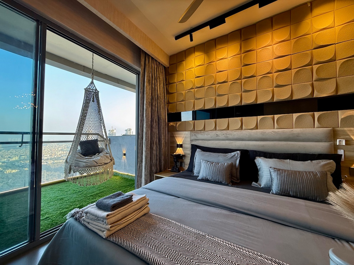 - 31樓公寓 - 24 小時全天候提供專人代送服務 - Swiggy、Zomato 和 blinkit -可收看Netflix/Prime/Youtube -這座城市天際線及其他地區的無與倫比的全景。 -設備齊全的廚房,配備烹飪和用餐所需的一切設施。 -200 Mbps 高速 WiFi,提供 24 小時保全服務 -地理位置優越,坐落在市中心,靠近頂級餐廳、商店和景點。 -非常適合情侶、獨自旅行者和尋找奢華而難忘住宿的家庭。