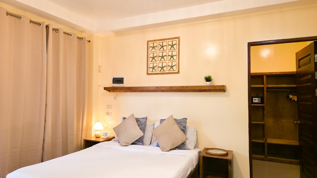 距離海灘僅 1 分鐘的舒適溫馨空間。 此房源包括: –小廚房(電鍋、水壺、冰箱、單個電爐) –獨立衛浴,提供熱水 –窗式空調+電風扇 –充電牀頭燈 –配備麥克風的小喇叭 –舒適的標準雙人床,配有記憶海綿床墊 –四周都是綠色植物和良好的氛圍 我們住在附近,很樂意提供協助。 來享受島嶼生活吧!