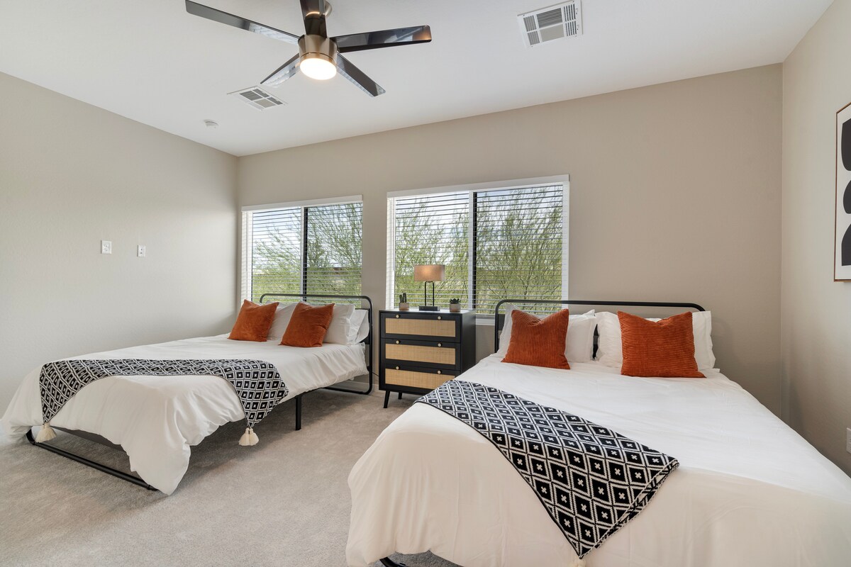 This fully renovated 4-bedroom home sleeps up to 10 guests and is designed with comfort, and functionality for families, snowbirds, or groups looking to relax, explore, or attend spring training. Enjoy a spacious layout with basic kitchen essentials, and cozy common areas that make it easy to unwind after a day of adventure. Whether you’re grilling in the backyard, gathering for movie night, or just enjoying the Arizona sunshine, this home has everything you need for a memorable stay.
