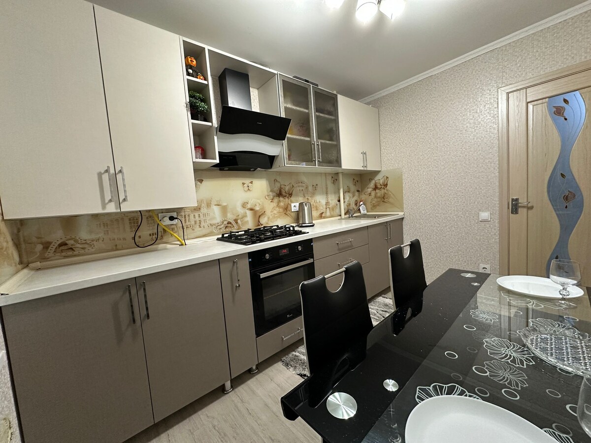 舒適的單間公寓,最近在基希訥烏住宅區的一棟新房子進行了翻修。 現代設計和所有電器和家具。 變壓牀(加大雙人牀)或可分為兩張獨立牀)。 房子是一棟有電梯的新建築。安靜的街區。 公共交通(在房源停靠)。 各種商店、餐廳、藥店、銀行。 距離基希訥烏市中心20分鐘路程。 可以從機場接送。