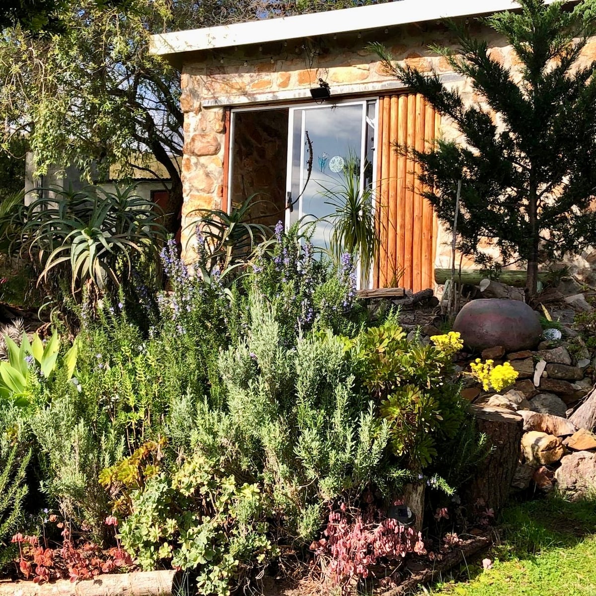 Das Steinhaus是一間古樸的獨立小屋,坐落在一個工作農場上,位於非洲最南端的納皮爾(Napier)郊外的fynbos區域中心。 我們完全沒有電網,不受負載減少的影響。 小屋由雙人床和套房浴室組成,與主屋分開。 我們的廚房設有迷人、質樸的木製廚房,配備必需品,包括水壺、微波爐、烤麵包機、爐具和冰箱。