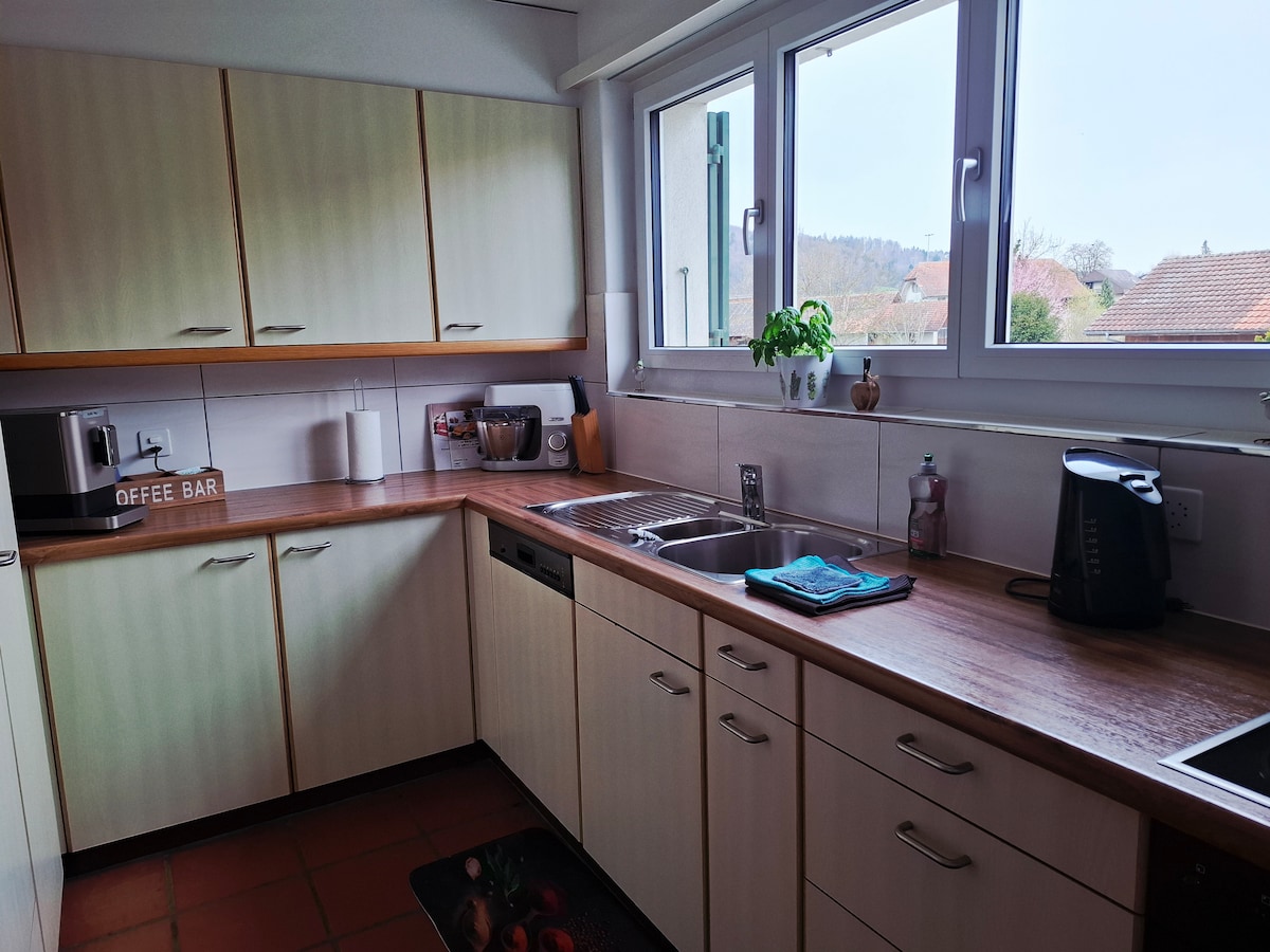 如果您想在市中心尋找安靜的地方,一定會喜歡我們的Fryburg客房!我們的客房距離Langenthal附近的A1 15分鐘路程,遠離街道的噪音,為您提供安寧和舒適的設備齊全的2.5室公寓,讓您獨享。 最多可容納4人,配有沙發牀。 與我們一起,商務旅客和家庭都感到舒適。 夏天,帶火碗的座位邀請您逗留。