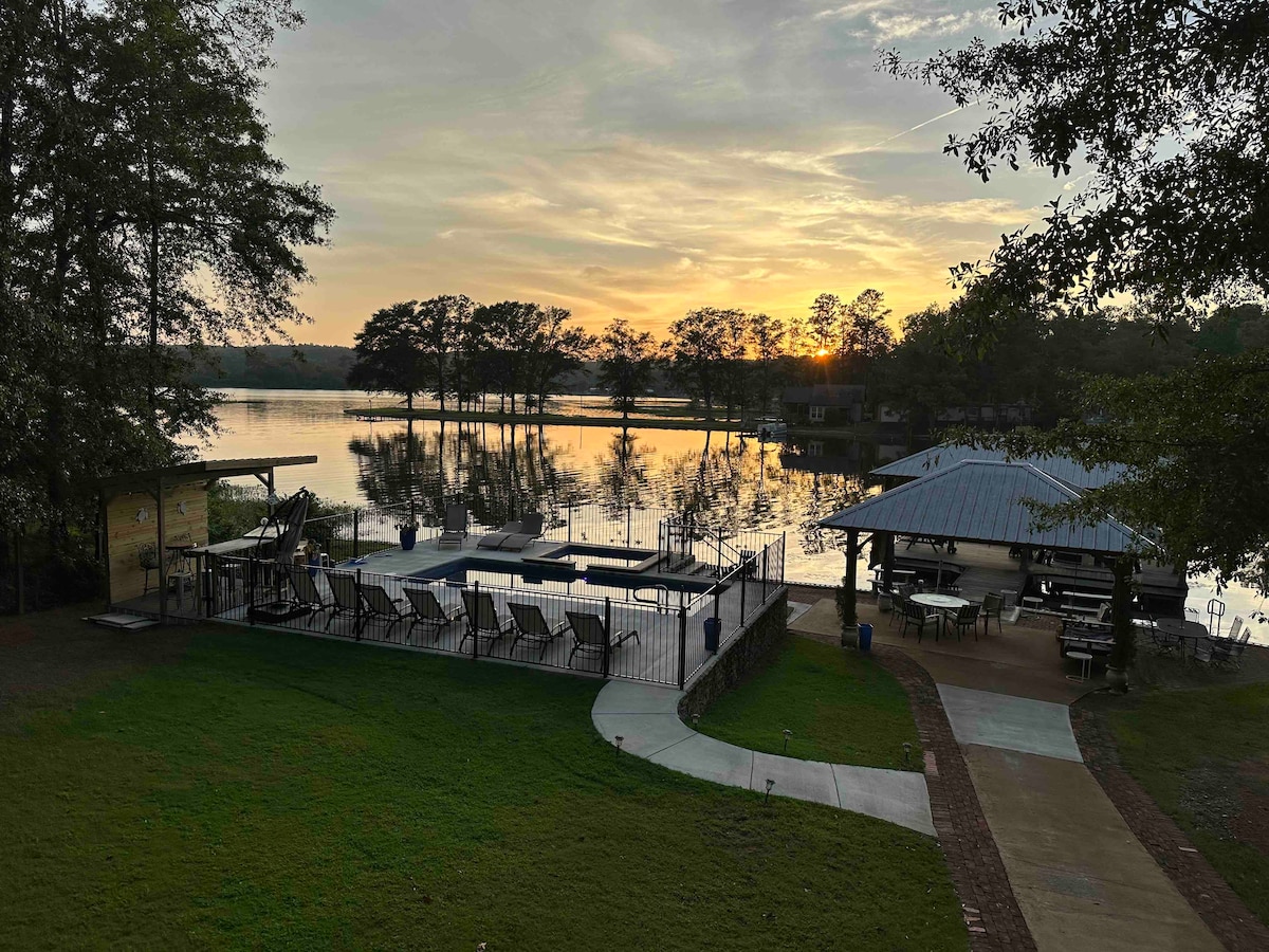 逃到這個私人Lay Lake度假勝地! 寬敞的4床、3浴室房源,配有泳池、按摩浴缸、碼頭、船坡道和火坑。 在甲板上放鬆身心,欣賞日落景觀,在水中享受家庭樂趣,並充分利用隨附的水上玩具。 設備齊全的廚房和開放式起居區域,非常適合家庭度假或朋友度假—您的終極湖畔度假勝地!